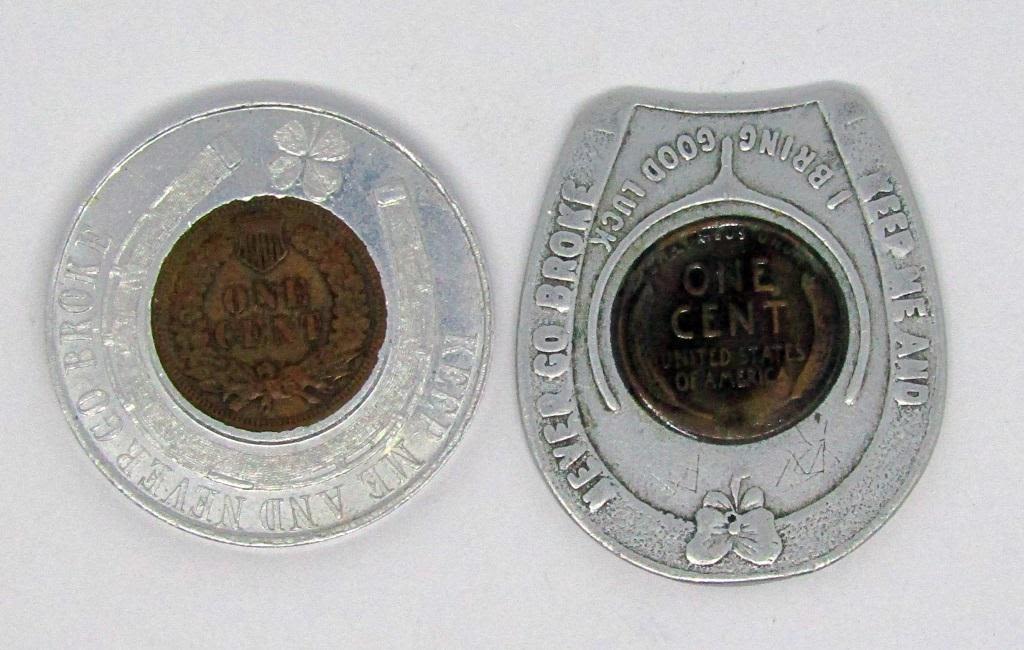 ENCASED INDIAN HEAD LUCKY PENNY CENT PIECE plus LINCOLN CENT LUCKY CHARM