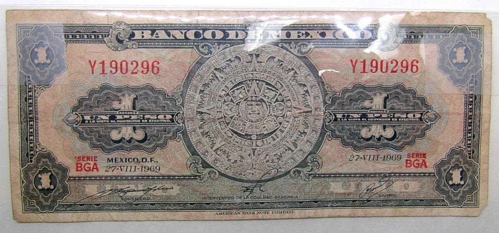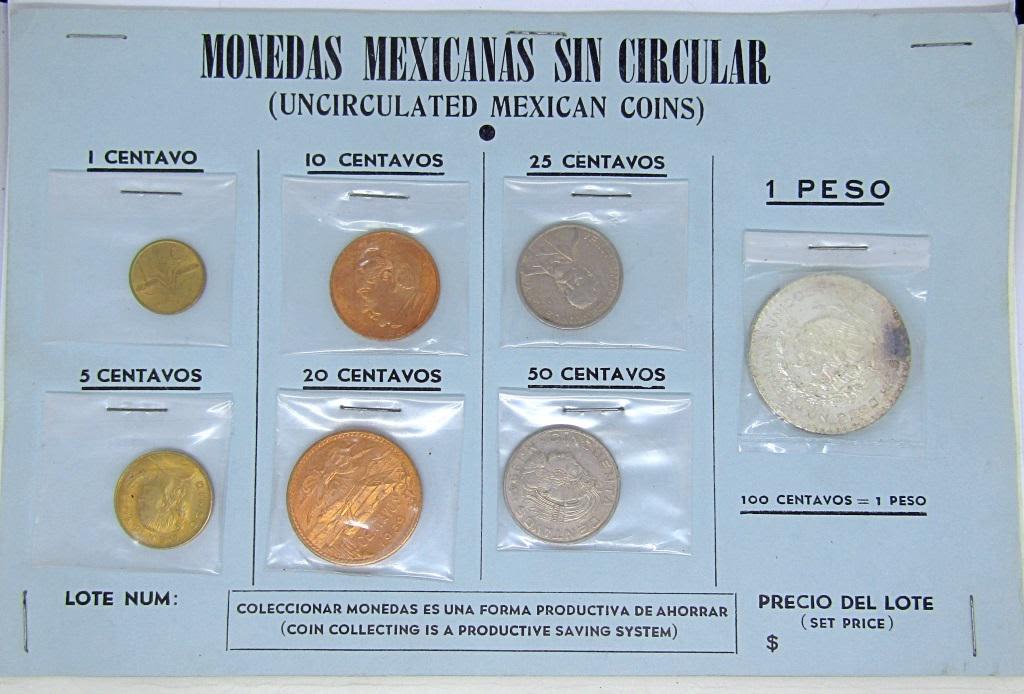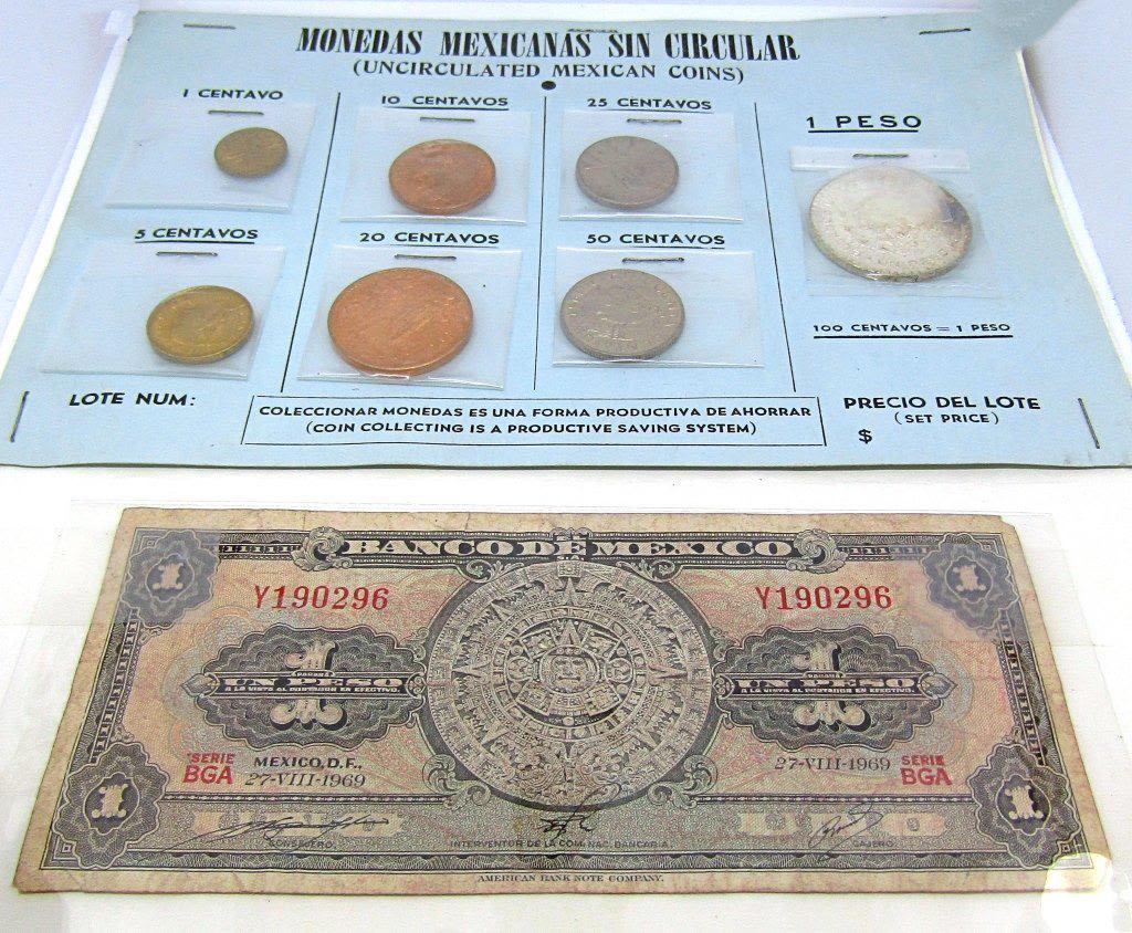 1966 UN PESO plus 6 OTHER MEXICO COINS with 1969 BANDO DE MEXICO NOTE