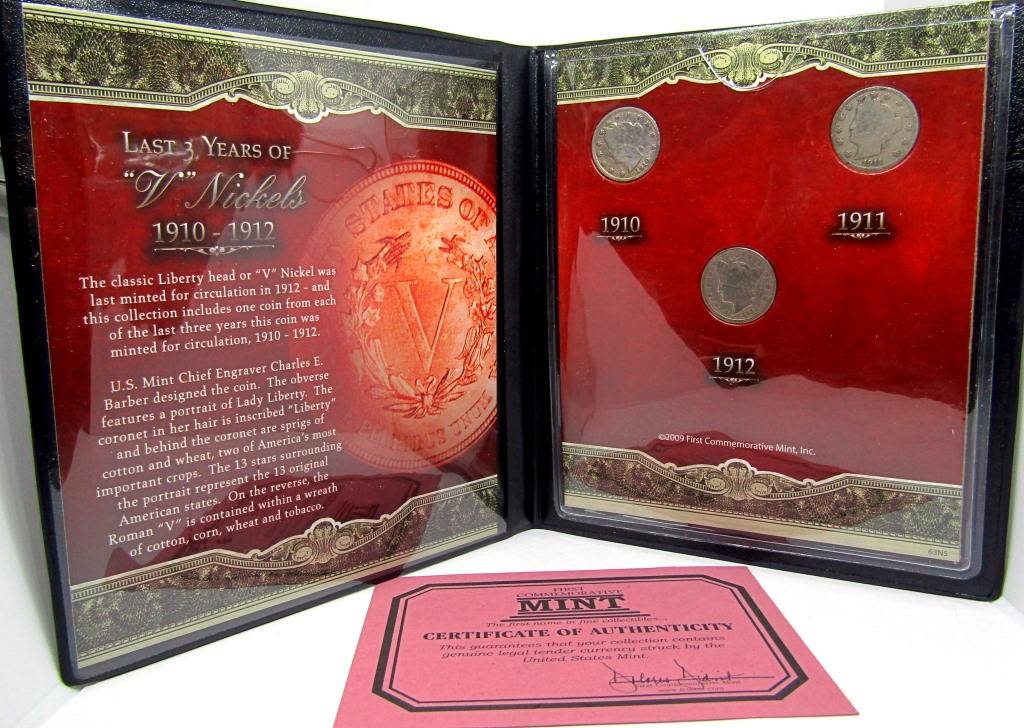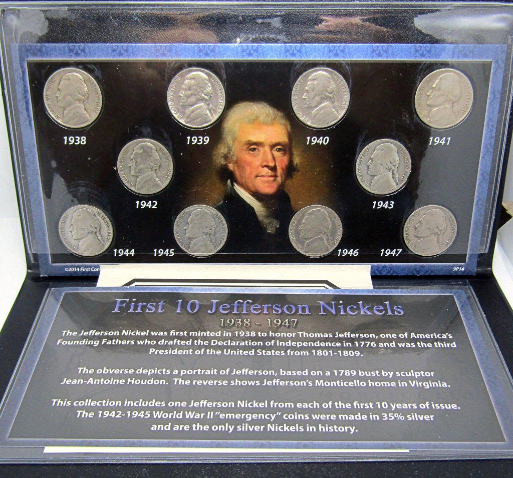 TURN of the CENTURY PENNIE & NICKELS, LAST 3 YEARS of "V" NICKELS, 2006 P&D SACAGAWEA DOLLARS, 2004 P&D SACAGAWEA DOLLARS, BLACK DIAMOND DISAPPEARING BUFFALO & STAMP, FIRST 10 JEFFERSON NICKELS 1938-1947 with 3 SILVER