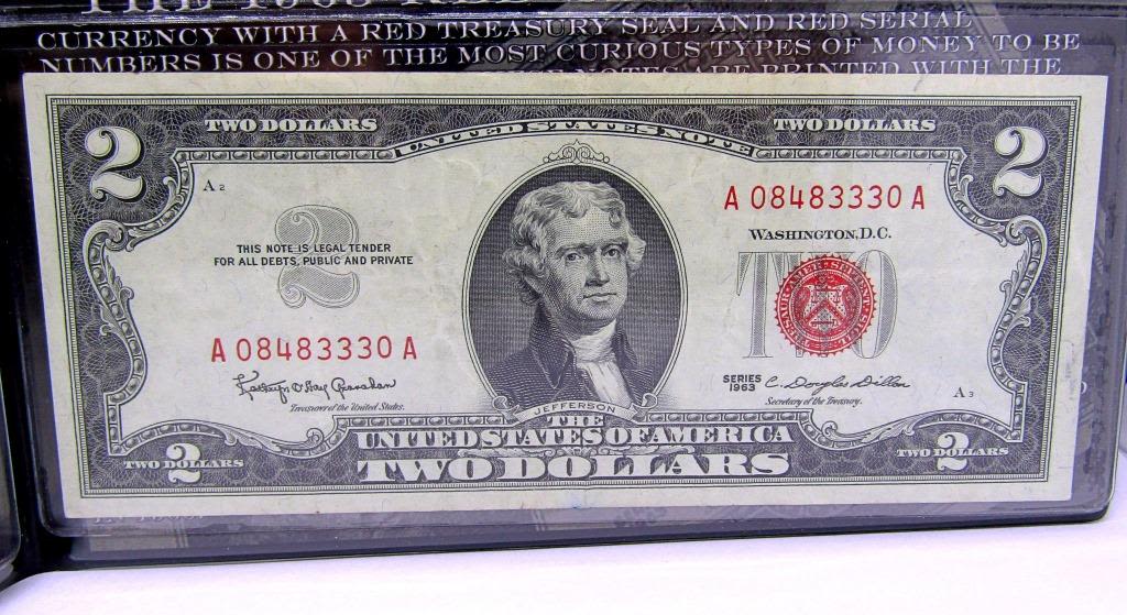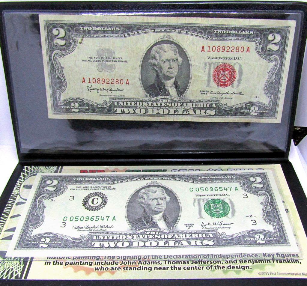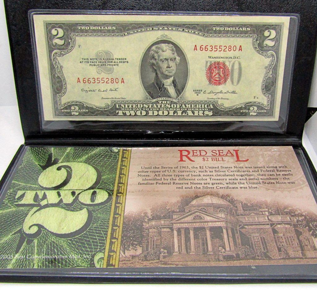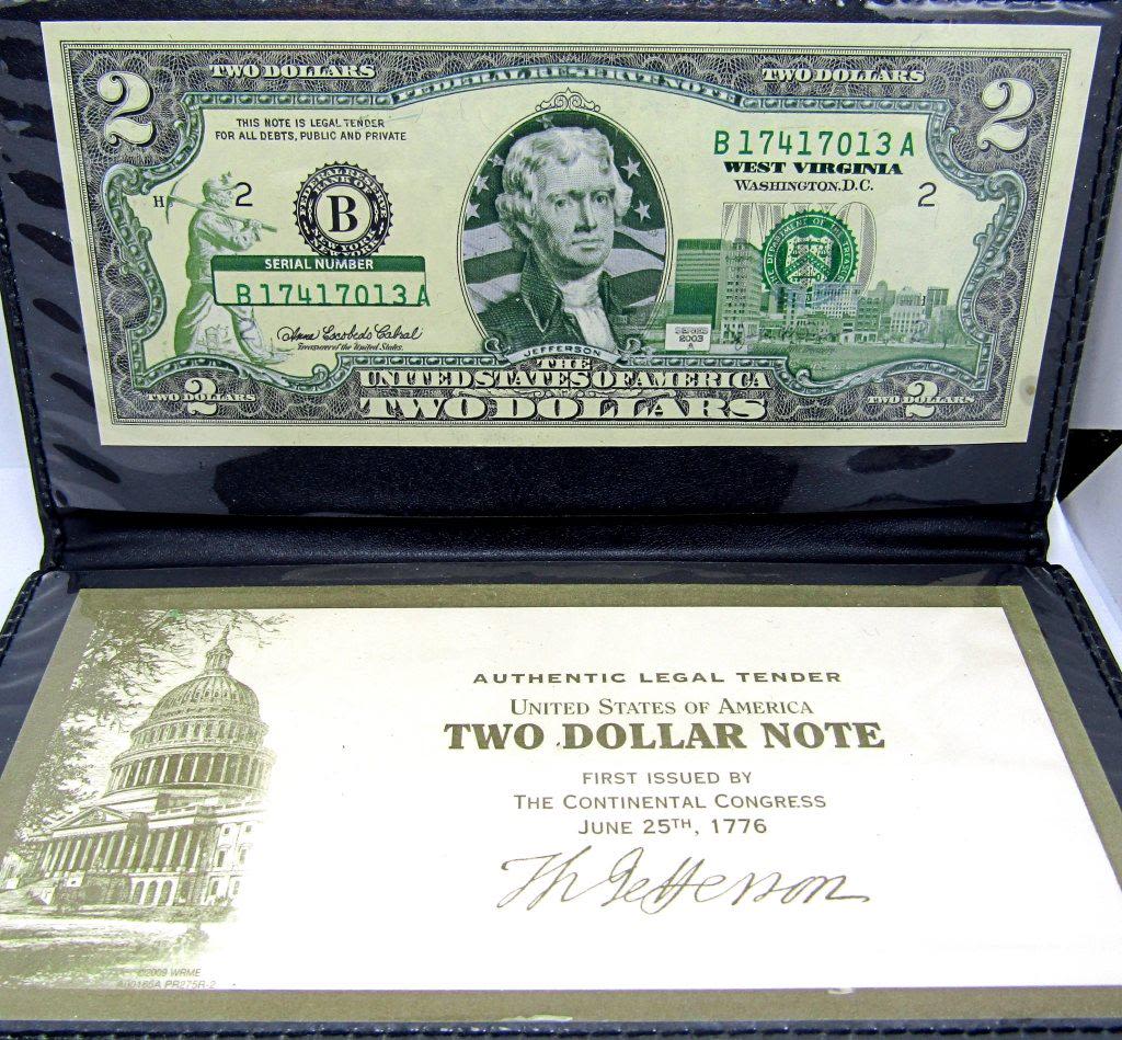 1957 SILVER CERT, 1957-B SILVER CERT, 1953-B $2 RED SEAL, 1963 & 2003 $2 NOTES 1963 $1 BARR NOTE & $2 RED SEAL, 1976 $2 STAMPED BICENTENNIAL NOTE, 2003 $2 ENHANCED WEST VIRGINIA NOTE