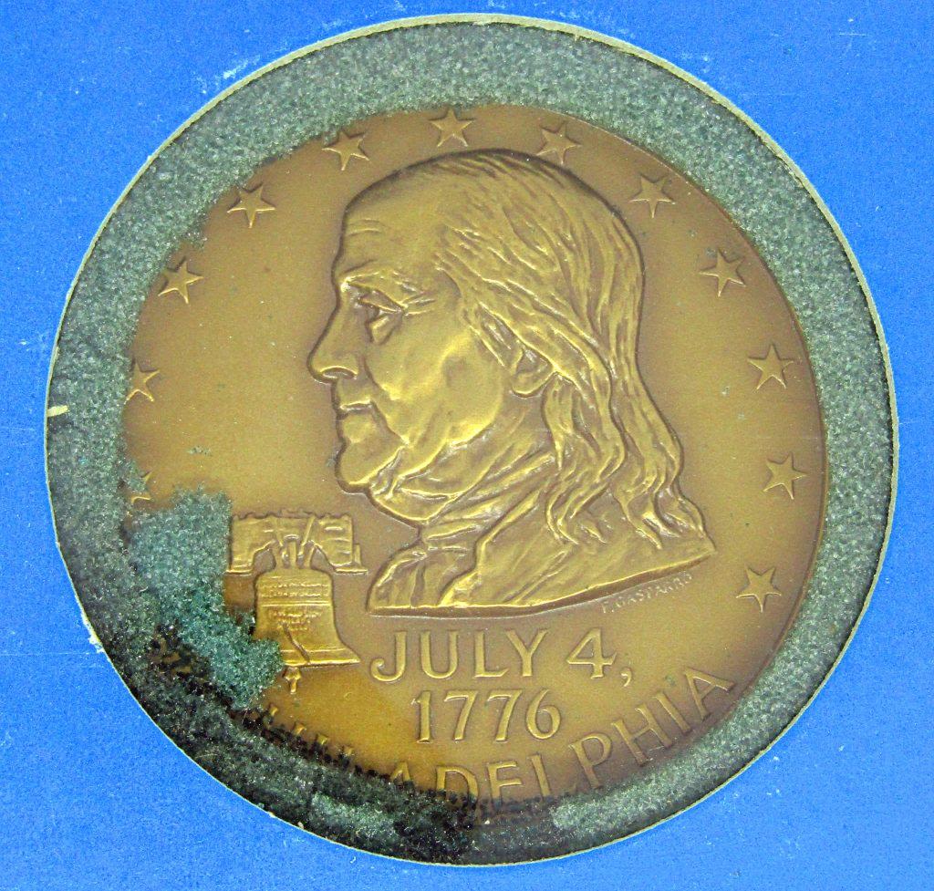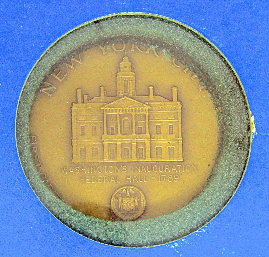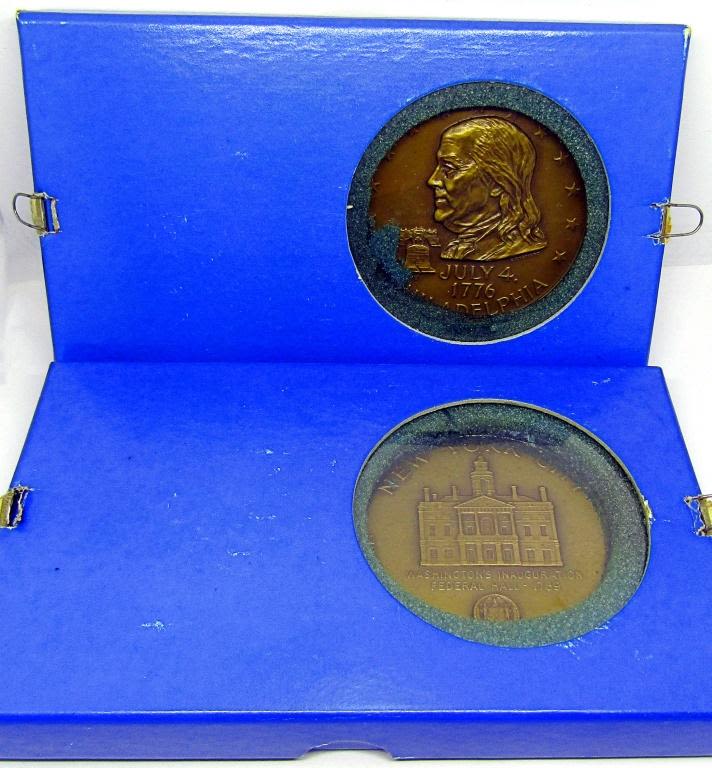 BEN FRANKLIN MEDAL & NEW YORK CITY – BOTH VERY VINTAGE BOXES / DISPLAYS with SOME GREEN FOAM DECAY