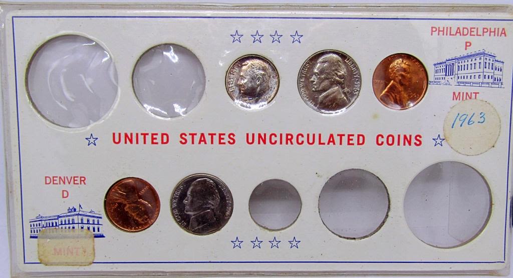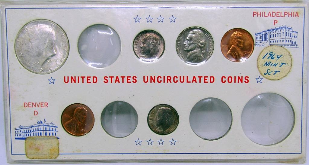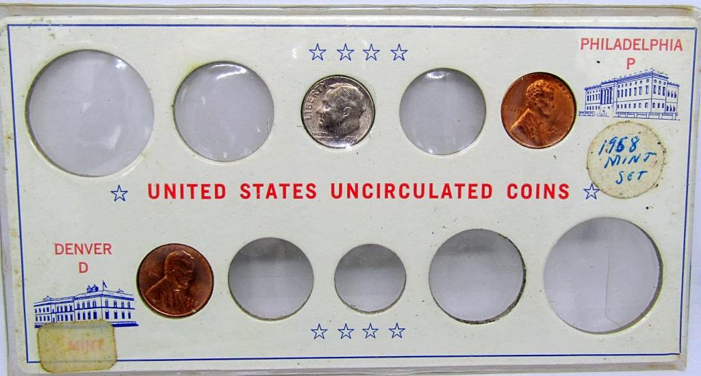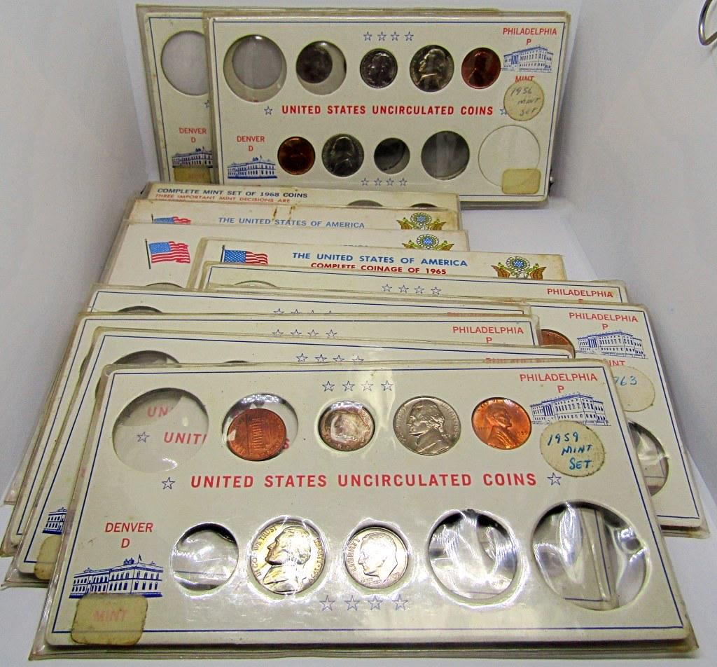 1956, 1958, 1959, 1960, 1961, 1962, 1963, 1964, 1965, 1966, 1967, 1968, 1969, 1970 – (11) SILVER DIMES (1) 1964 HALF DOLLAR, (6) 40% SILVER HALF DOLLARS plus JEFFERSON NICKELS, WHEAT CENTS, ROOSEVELT DIMES &
