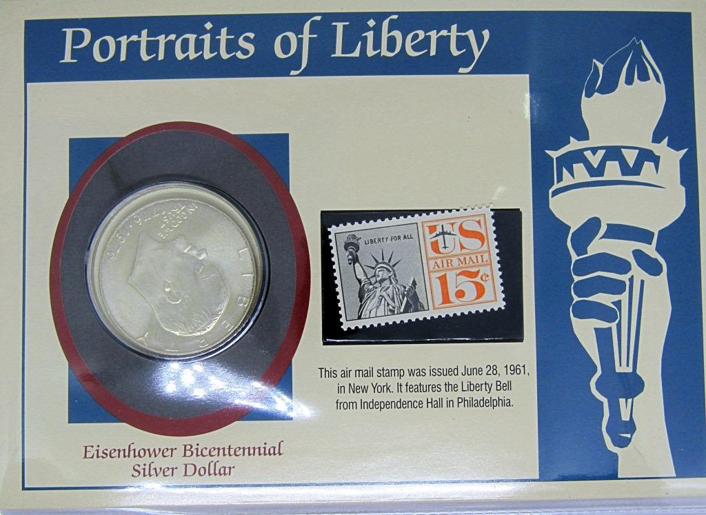 PORTRAITS of LIBERTY AIR MAIL STAMP & 1976 SILVER IKE DOLLAR