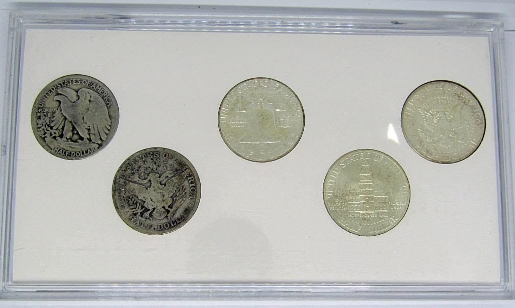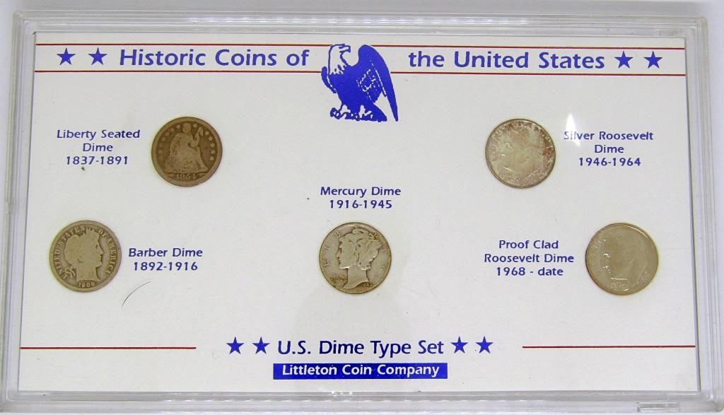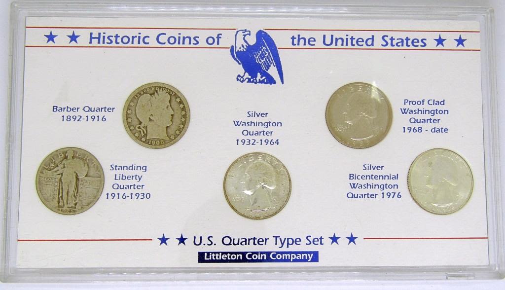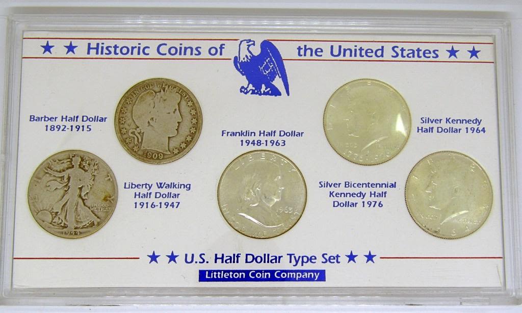 (5) COMPLETE SETS in ACRYLIC CASES – QUARTER TYPE SET, U.S. HALF DOLLAR SET, NICKEL TYPE SET, SMALL CENT TYPE SET, DIME TYPE SET – LOT IS LOADED WITH SILVER COINS!