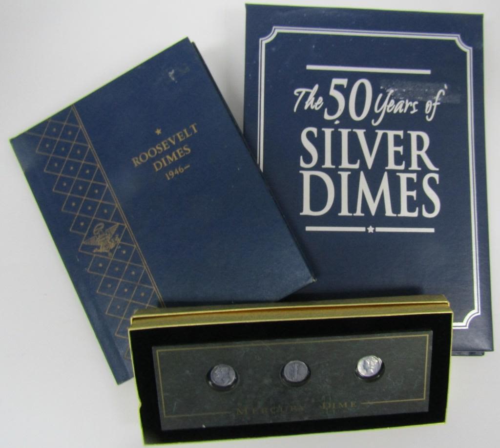 IN INFORMATIVE DISPLAY BOOK / BOX plus EMPTY ROOSEVELT DIME WHITMAN BOOK USED