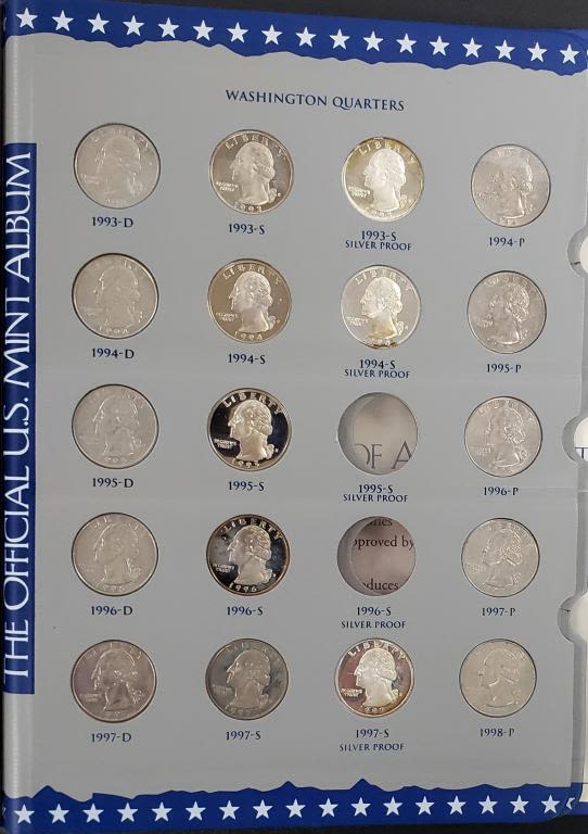 Has 6 Silver Proof Quarters. Missing 1995 & 1996 Silver proofs. Other than those the book is complete.