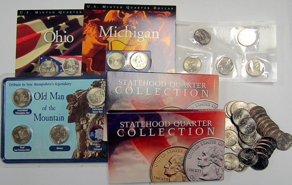 1999 SET, OHIO P&D, MICHIGAN P&D, OLD MAN of the MOUNTAIN SET plus 30 UNC MIX BAG – ( 54 TOTAL QTRS)