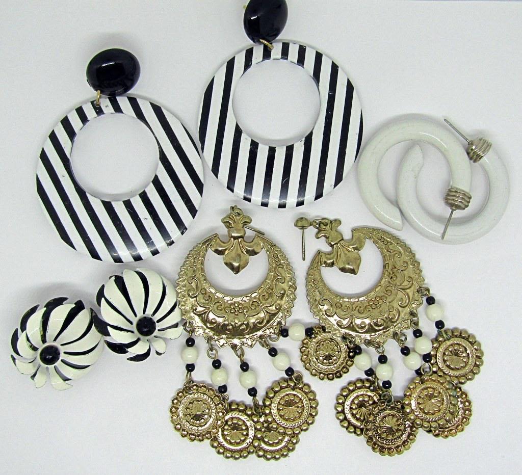 EARRINGS (1)METAL FLOWER (2)DANGLY WITH LUCITE (1)METAL HOOPED