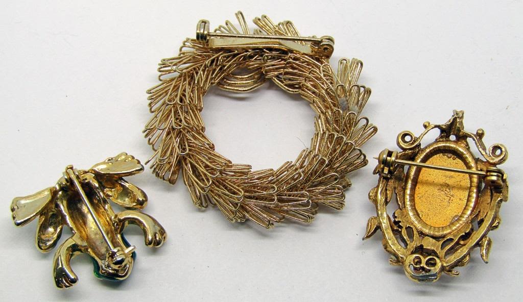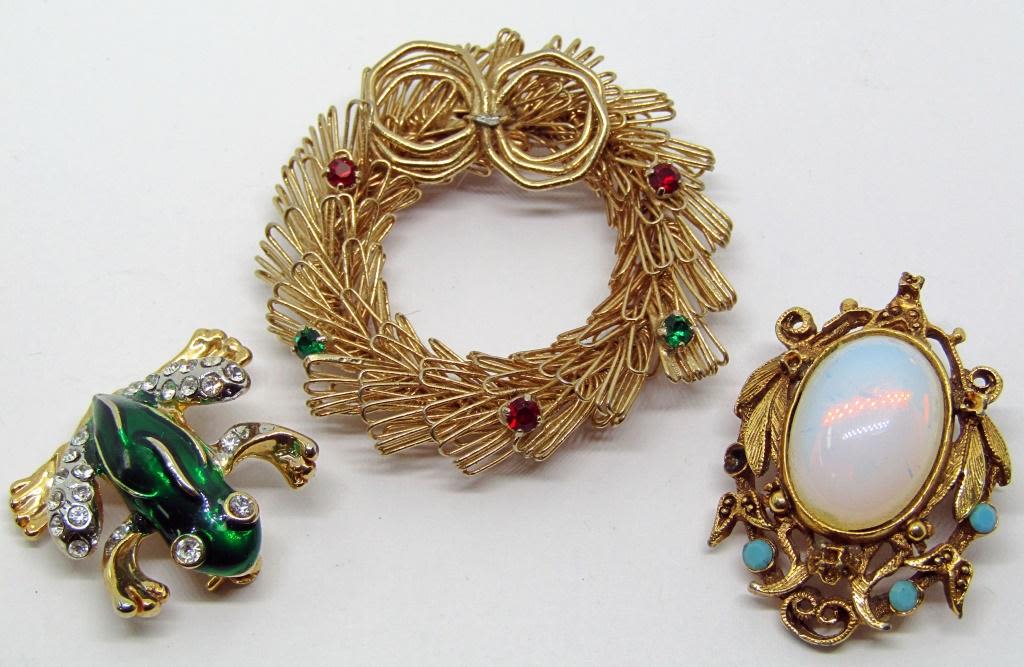 WREATH, FROG & OPALESCENT BROOCH.