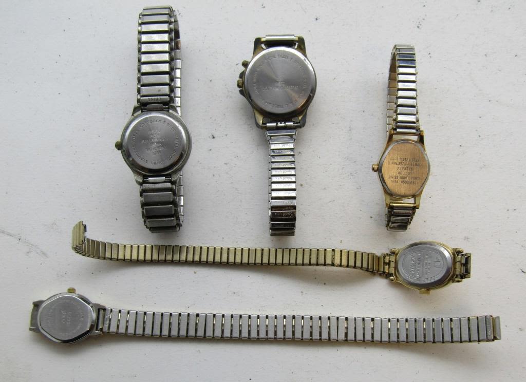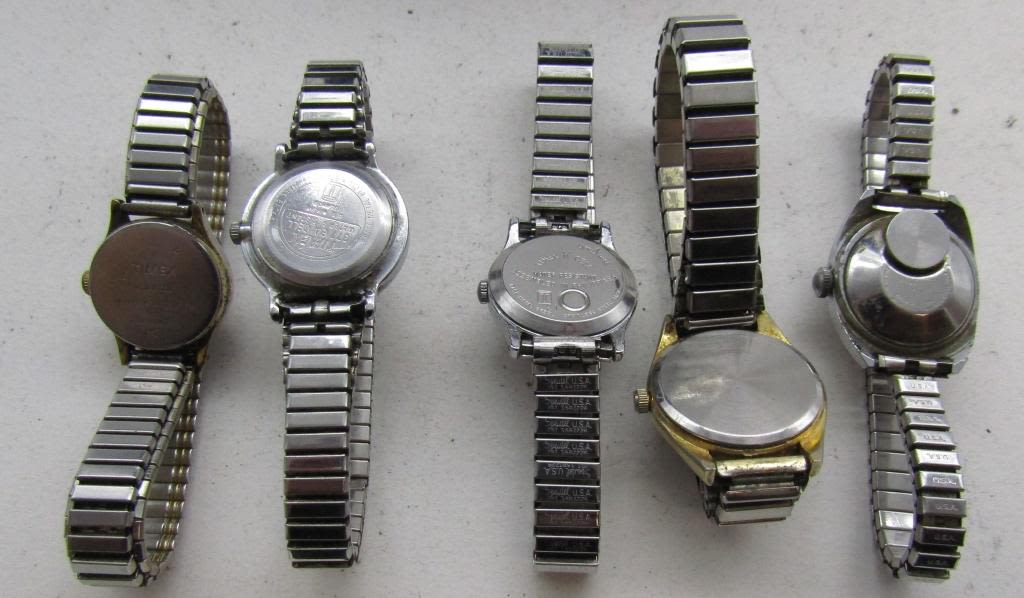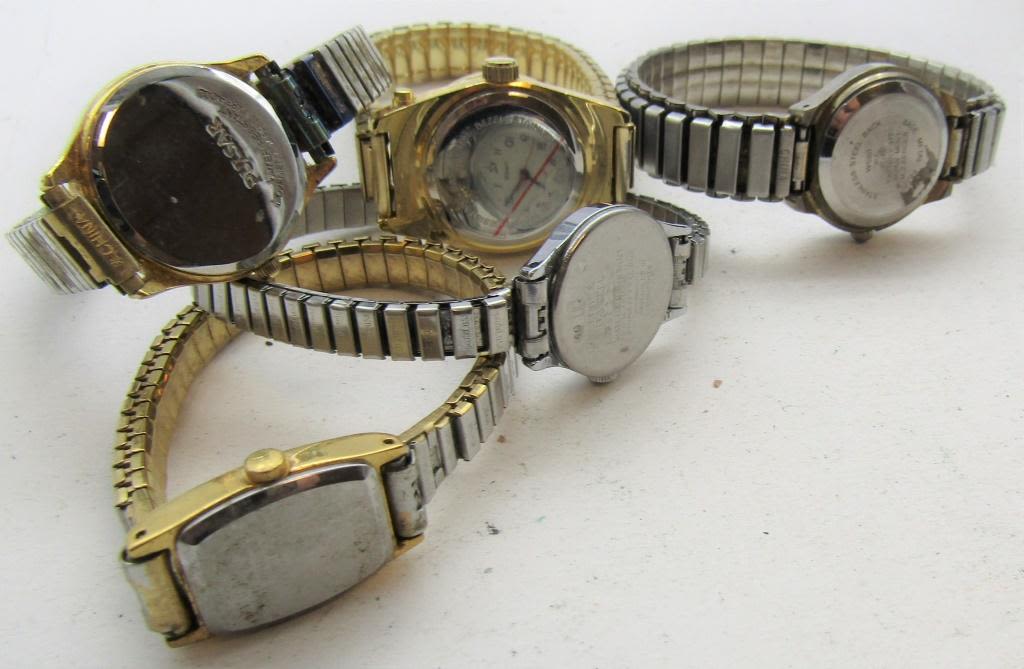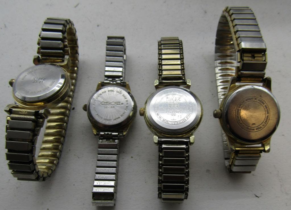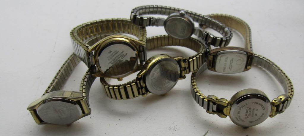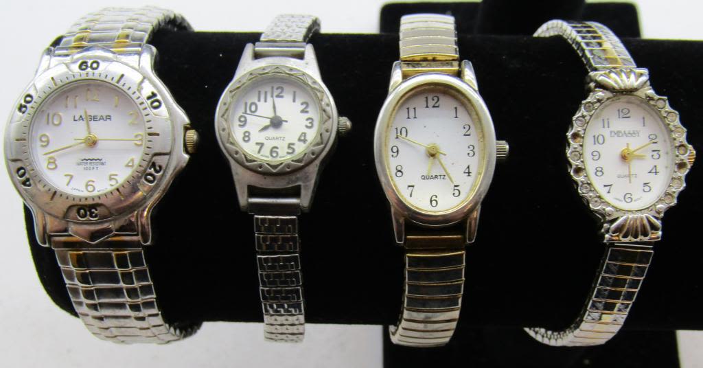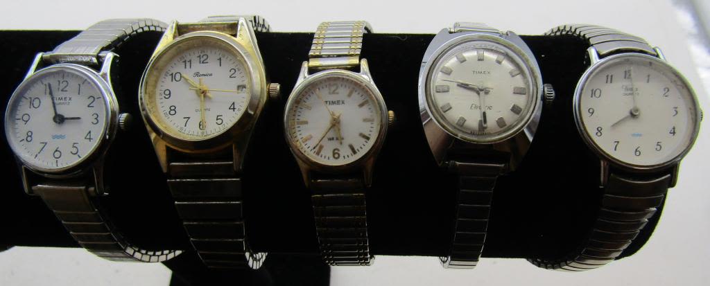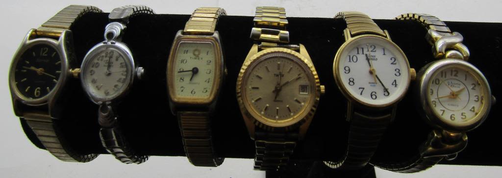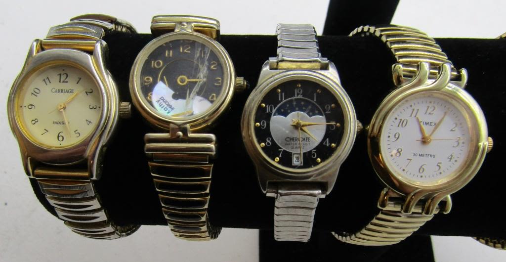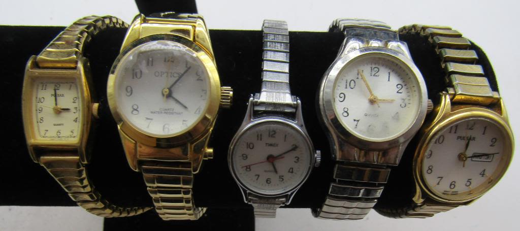 ALL UNTESTED: SOME MAY WORK, SOME MAY NOT, SOME MAY NEED BATTERIES, SOME FOR PARTS OR REPAIRS- 20 LADIES QUARTZ WATCHES-20 LADIES QUARTZ STRETCH BAND WATCHES-(2)PULSAR-ETERNITY-TIMEX-VICTORIA