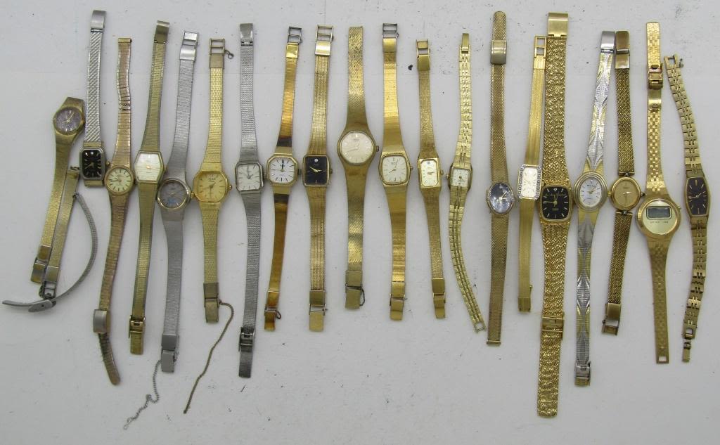 ALL UNTESTED: SOME MAY WORK, SOME MAY NOT, SOME MAY NEED BATTERIES, SOME FOR PARTS OR REPAIRS- 20 LADIES QUARTZ WATCHES-(2)PHASAR-PB-(3)PULSAR-JO ANN CAMPBELL-(2)TIMEX-CITIZEN-(5)SIEKO-MILAN