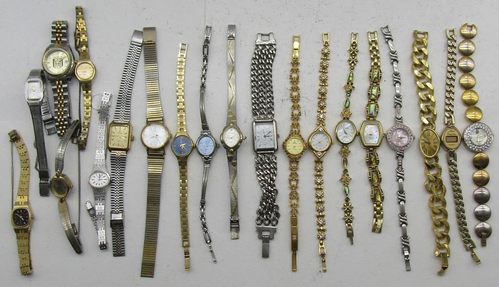 ALL UNTESTED: SOME MAY WORK, SOME MAY NOT, SOME MAY NEED BATTERIES, SOME FOR PARTS OR REPAIRS- 20 LADIES QUARTZ WATCHES-WATCH IT-CENERE-CITIZEN-SPEIDEL-GLORIA VANDERBILT-SWEDA-DOMINIQUE-EMBASSY-SEIKO-JEMI