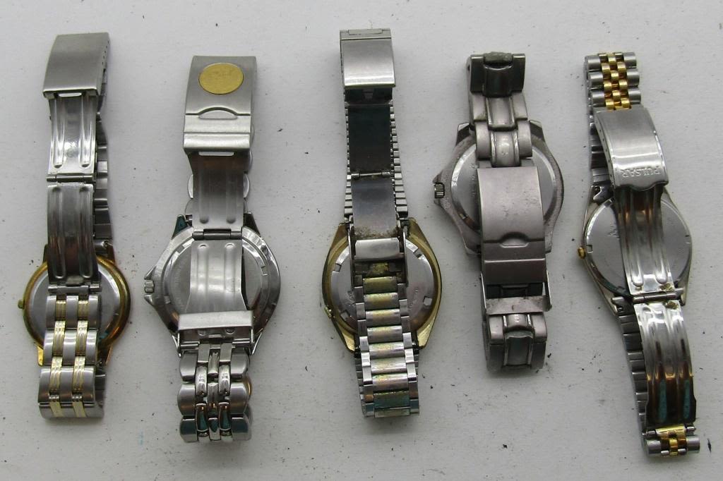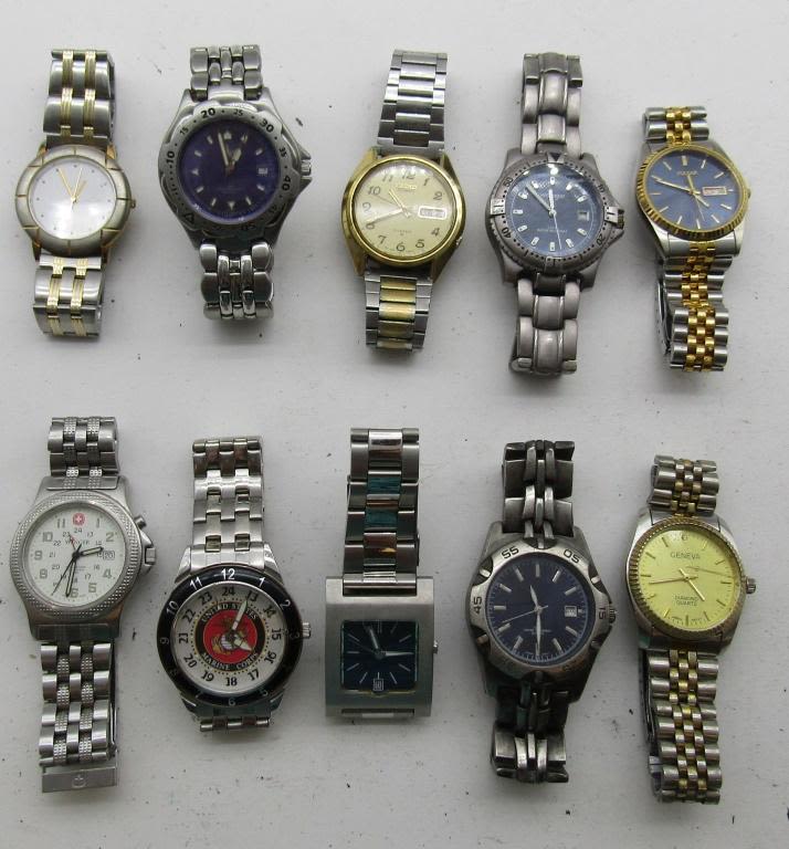 NOT TESTED AS TO WORKING OR NOT-SOME FOR PARTS OR REPAIRS-SOME MAY WORK–MOST WILL NEED BATTERY REPLACEMENT-(2)WRANGLER-SEIKO-GENEVA-SKAGEN-P ULSAR-MISC