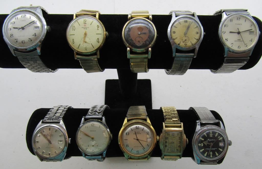 NOT TESTED AS TO WORKING OR NOT-SOME FOR PARTS OR REPAIRS-SOME MAY WORK:CENTURY-HELBROS-WELSBRO-ORIOSA-MAJESTIME -TRADITION-(3)TIMEX-CROTON-MISC