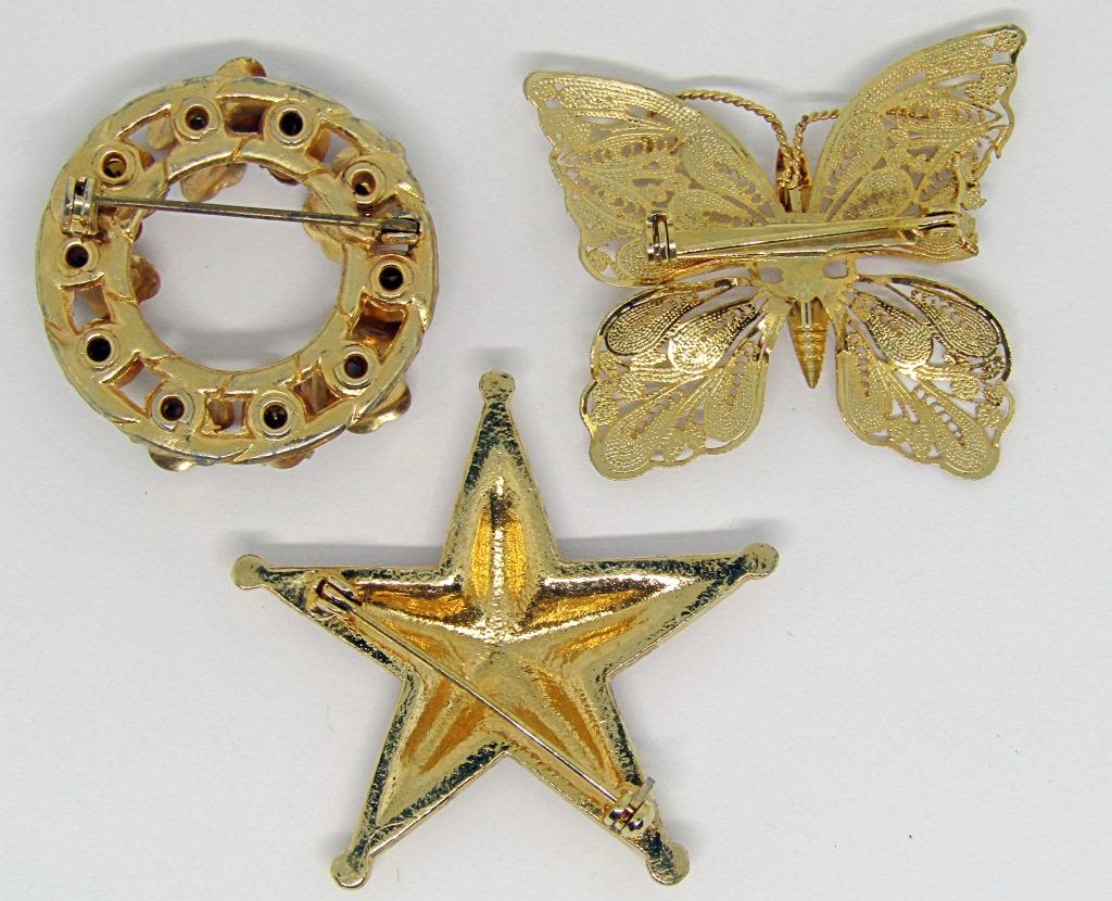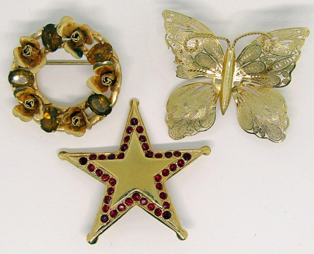 RUBY RED RHINESTONES (1)CIRCULAR WITH YELLOW RHINESTONES (1)FILIGREE BUTTERFLY