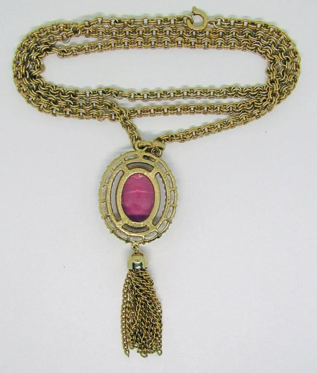 LARGE VIOLET RHINESTONE CENTER-FAUX BORDER WITH TASSLES