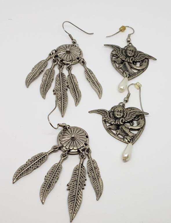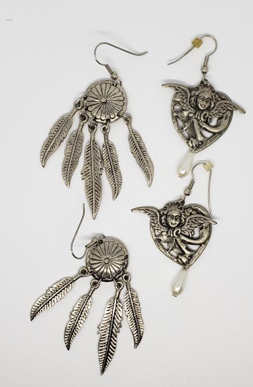 EARRINGS PLUS (1)PAIR OF HEART/ANGEL DANGLY PIERCED EARRINGS WITH FAUX PEARL CHARM