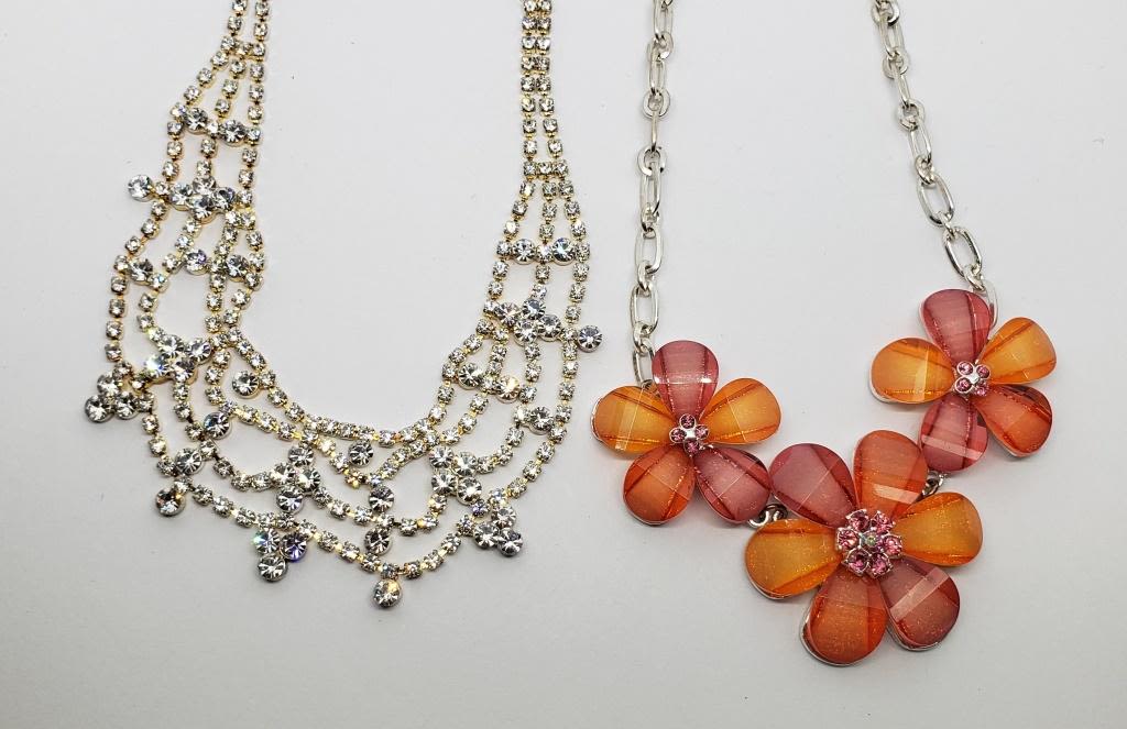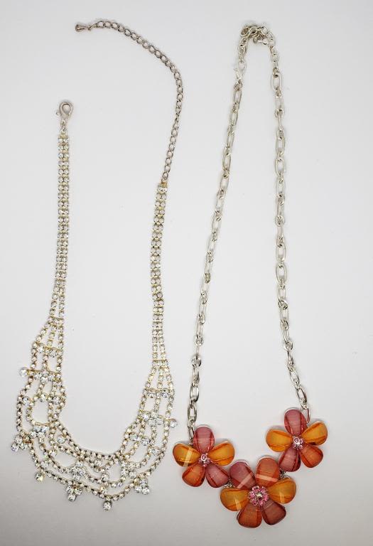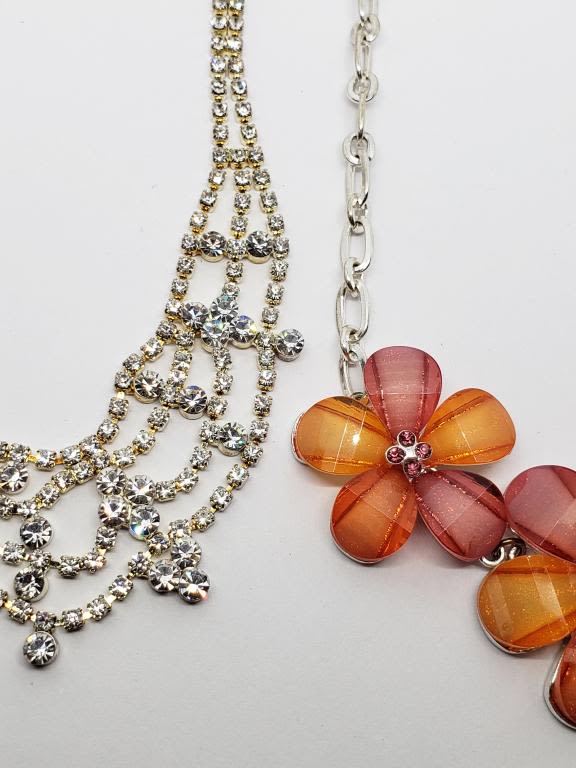 (1)FLOWERS WITH CORAL AND ORANGE LUCITE WITH PINK RHINESTONES