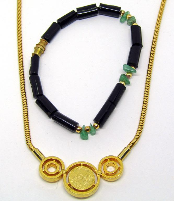 GREEN LUCITE PLUS BLACK LUCITE BEADED BRACELET WITH JADE STONES