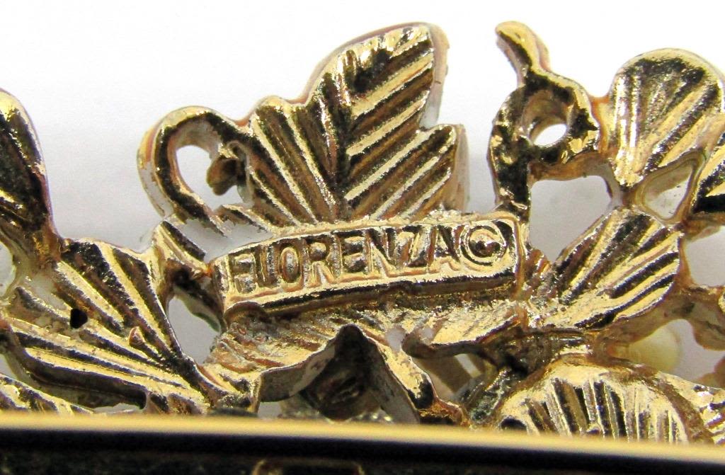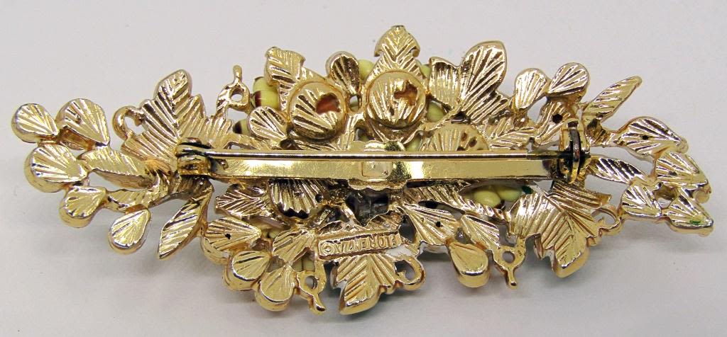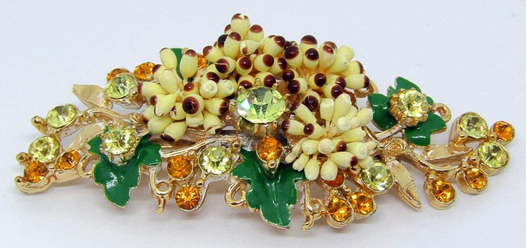 WITH GREEN AND ORANGE RHINESTONES-GREEN ENAMEL-LUCITE