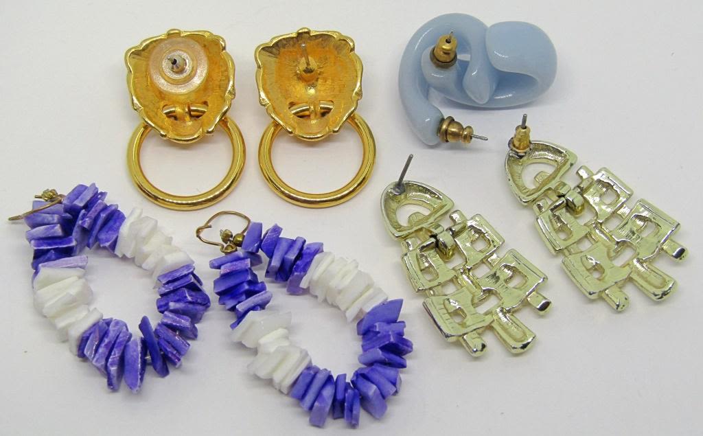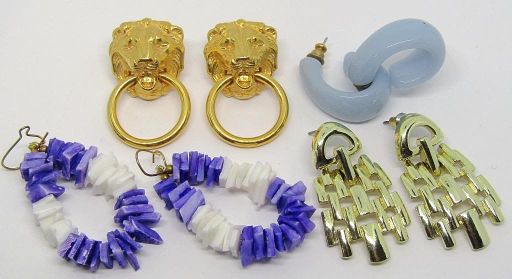 (1)PUKA SHELL (1)LION HEAD (1)WOVEN DANGLY STYLE (1)BABY BLUE LUCITE HOOPED