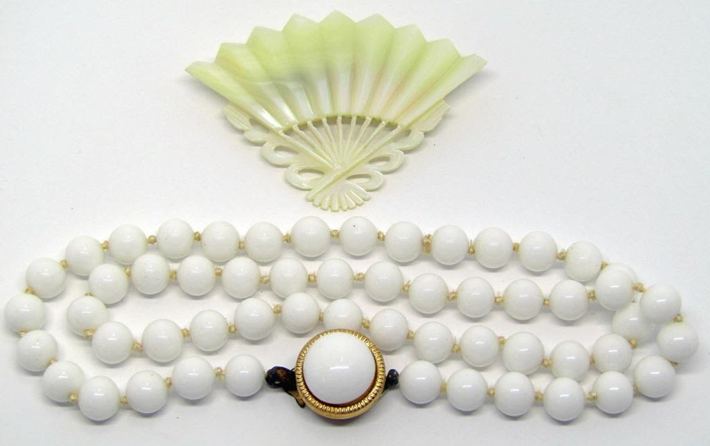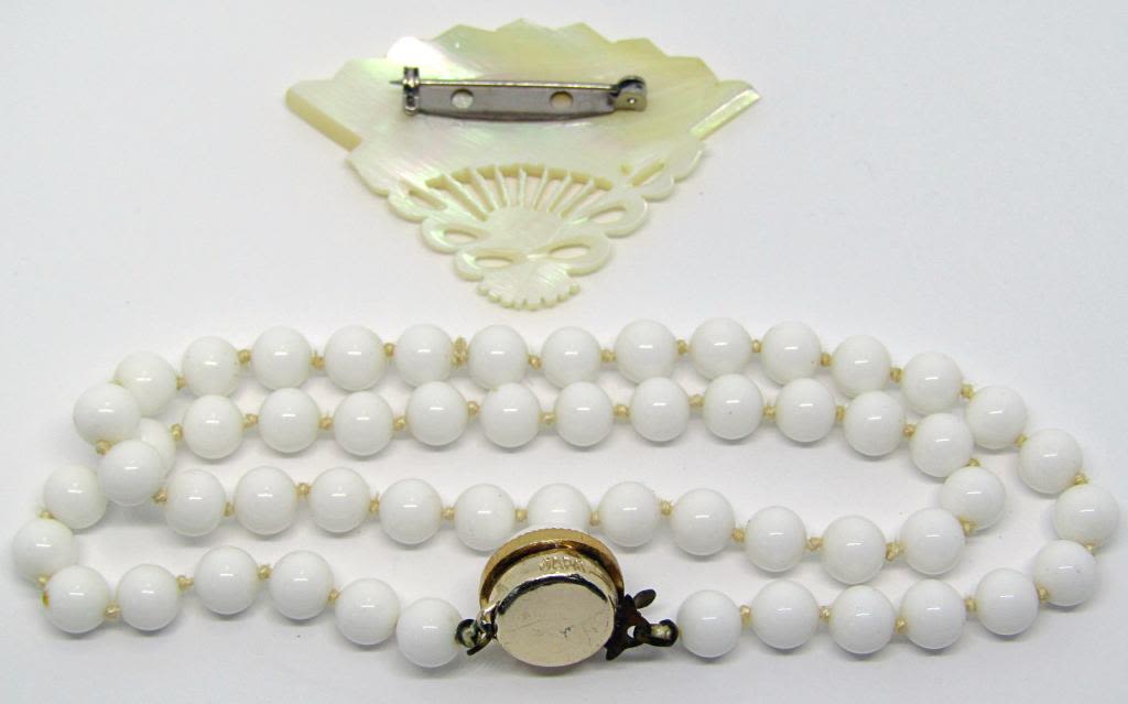 (1)CARVED MOTHER OF PEARL FAN BROOCH