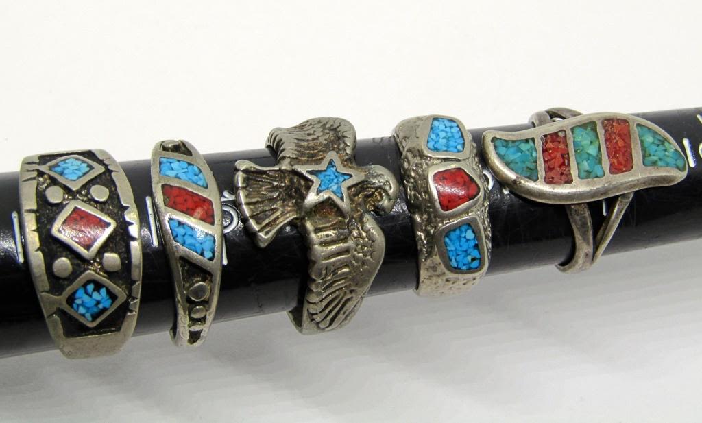 TURQUOISE AND CORAL INLAY (1)THUNDERBIRD-VARIOUS SIZES