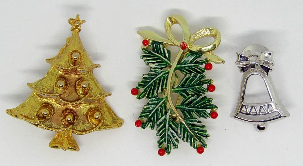 WITH ENAMEL (1)GOLD TONED CHRISTMAS TREE (1)SILVER TONED BELL PIN