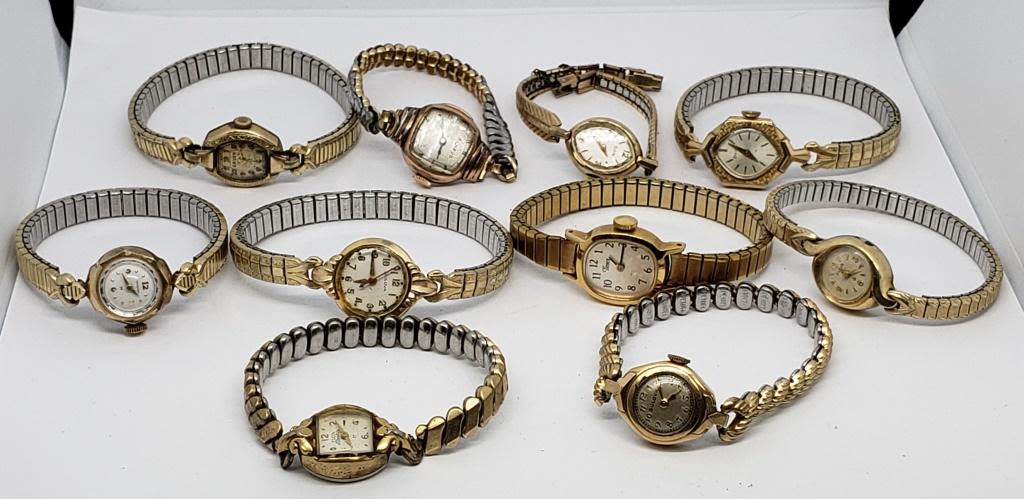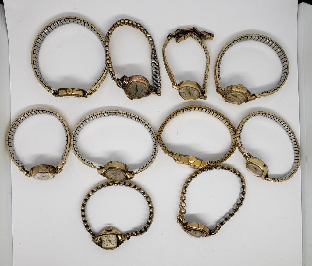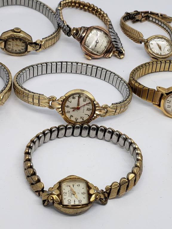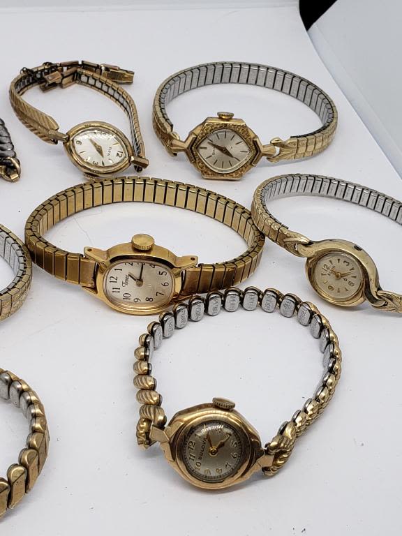 TIMEX, ELGIN, BULOVA – (5) 10k RGP, (2) 10k GOLD FILLED – UNTESTED