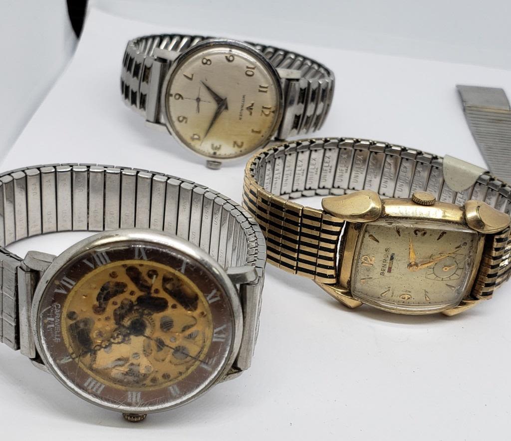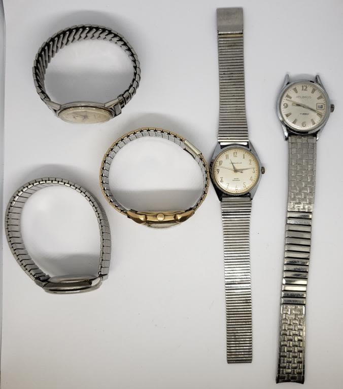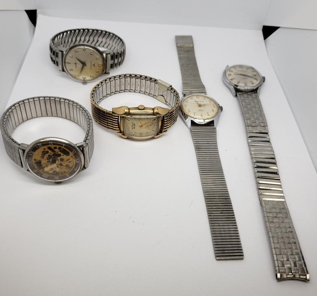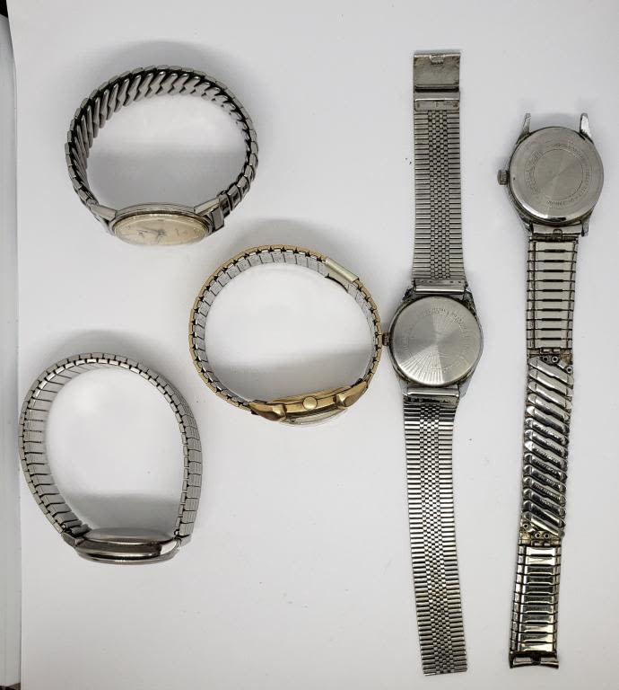 5-MENS WRIST WATCHES – UNTESTED – (1) 10k GOLD FILLED