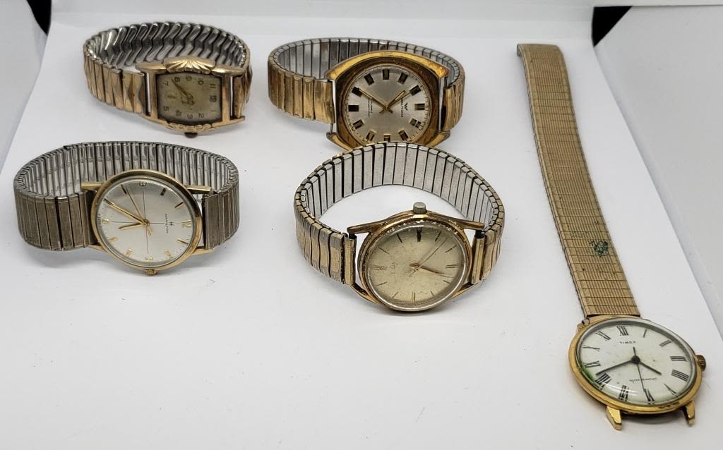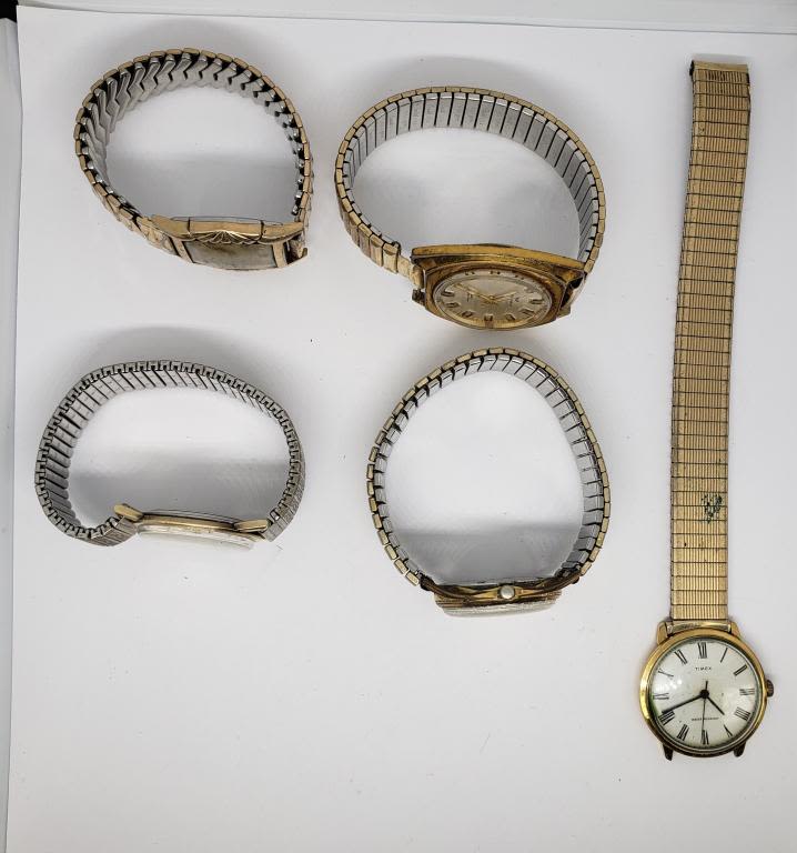 5-MENS WRIST WATCHES – UNTESTED – TIMEX MISSING BACK