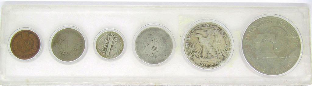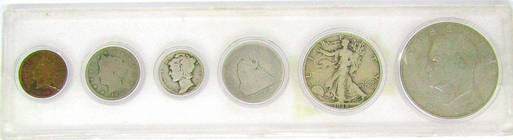 1840 SEATED QTR, 1931-S DIME, 1889 "V" NICKEL, 1890 INDIAN CENT