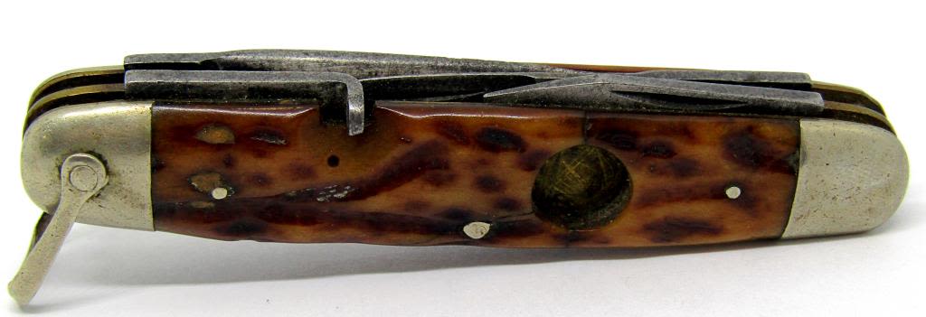 WORM GROOVE BONE STAG – 3 BLADE – PRE OWNED missing EMBLEM on HANDLE