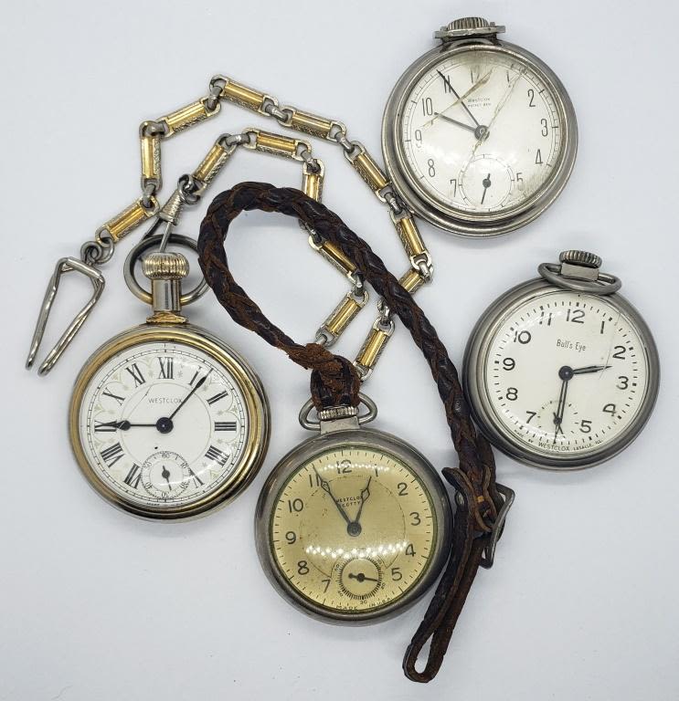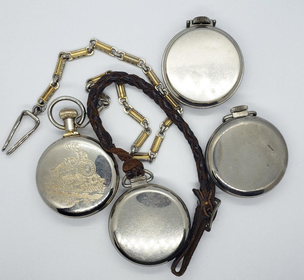 All 4 run fine but 2 have cracks in the front cover and one has some spots on the dial. The one with the fancy dial has a train on the back cover.
