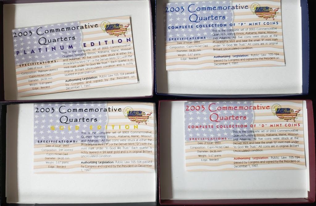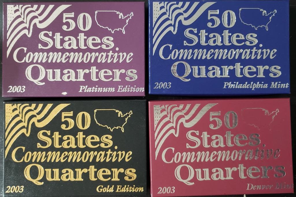 (1)DENVER MINT (1)PHILADELPHIA MINT (1)GOLD EDITION (1)PLATINUM EDITION (20)STATE QUARTERS INCLUDED $5 FACE VALUE