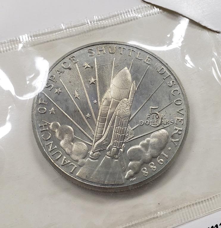 MARSHALL ISLAND $5 COMMEM in ORG FLIP & (1) SPACE SHUTTLE DISCOVERY $5 COMMEM 1988 MARSHALL ISLAND