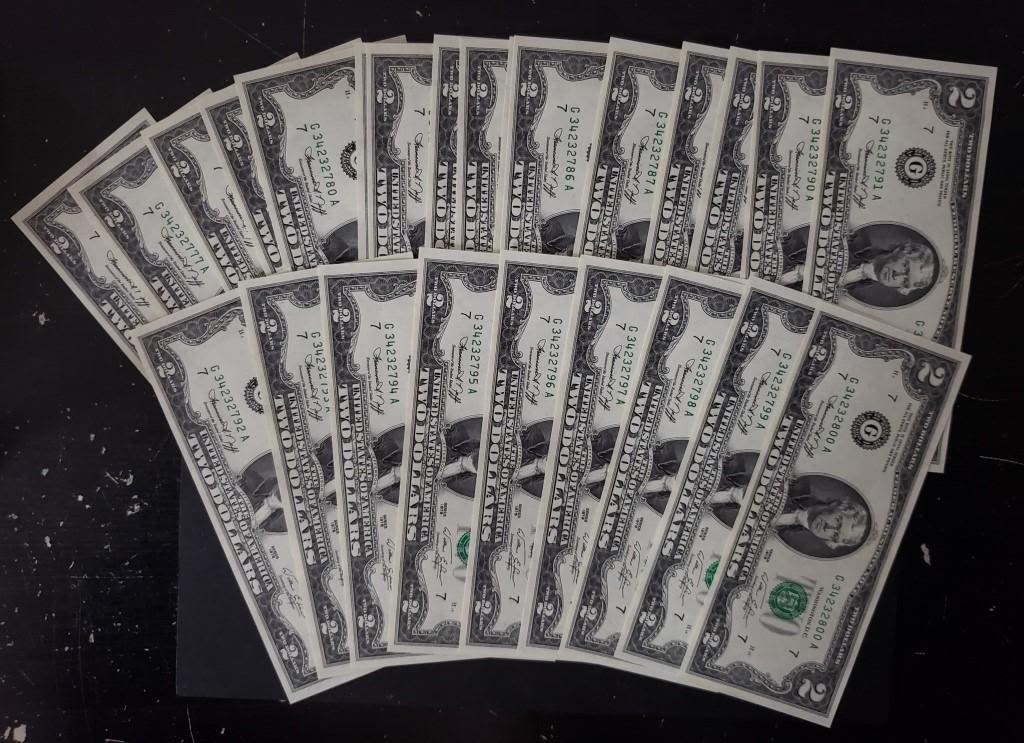 NICE CRISP LOT of CONSECUTIVE NUMBER 1976 $2 BICENTENNIAL FRN – $50 FACE