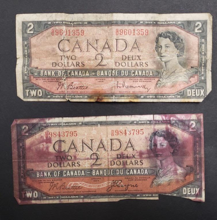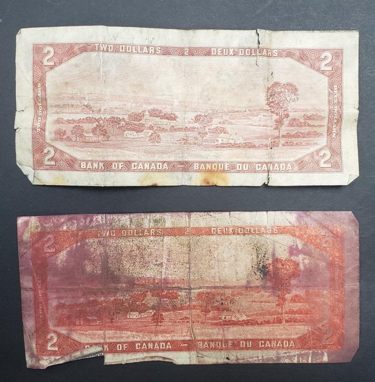 HEAVILY STAINED w/RED & 1954 $2 NOTE REVISED STYLE