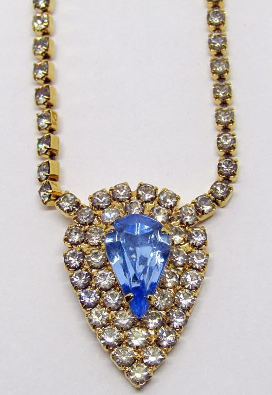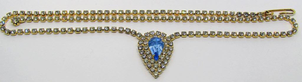 PENDANT HAS A BEAUTIFUL LIGHT BLUE RHINESTONE MIDDLE!