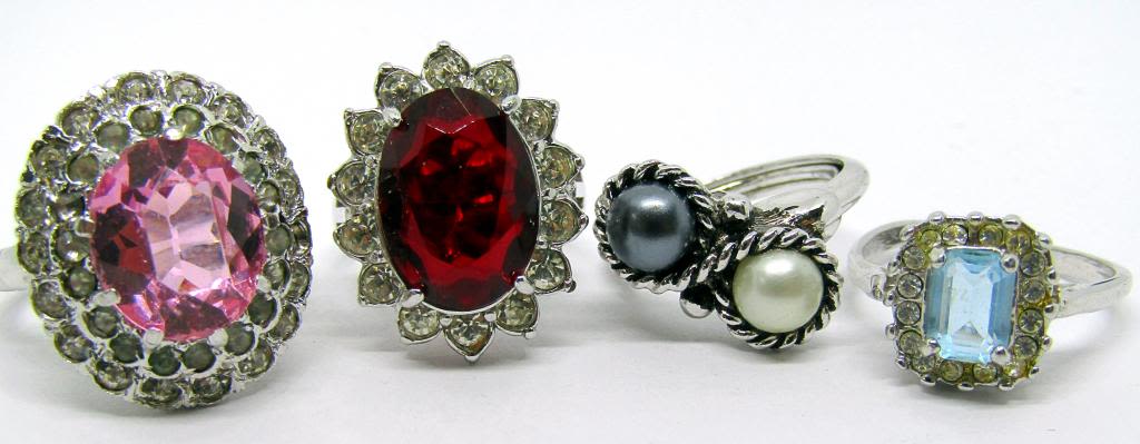 BLUE, PINK, RED RHINESTONES & GREY AND WHITE FAUX-PEARLS!