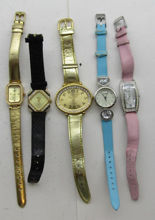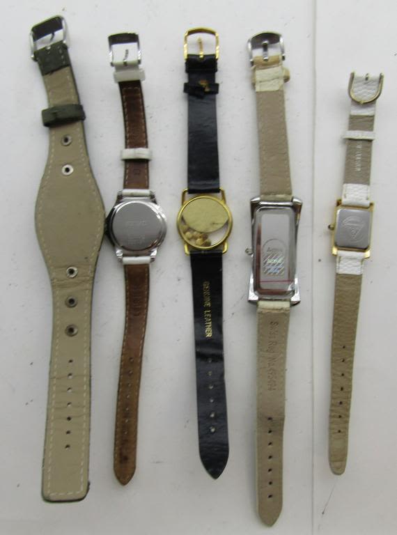 ALL UNTESTED: SOME MAY WORK, SOME MAY NOT, SOME MAY NEED BATTERIES, SOME FOR PARTS OR REPAIRS- 20 LADIES QUARTZ WATCHES-LEATHER BANDS -DAISY FUENTES-PEDRE-ESTEEM-ANNE KLEIN-COLLEZIO-NARMI-GIORDANO-SEIKO-VISAGE-(3