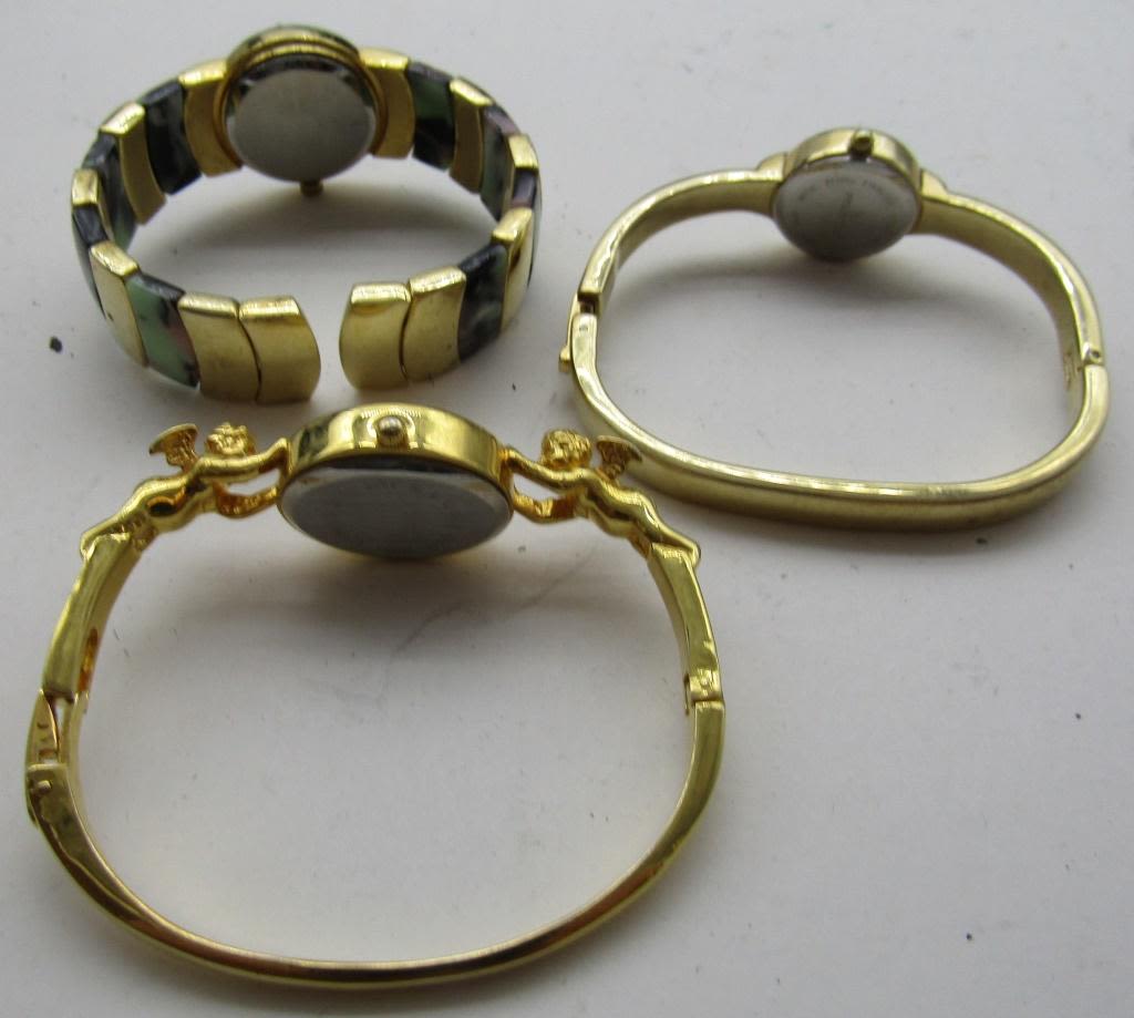 ALL UNTESTED: SOME MAY WORK, SOME MAY NOT, SOME MAY NEED BATTERIES, SOME FOR PARTS OR REPAIRS- 20 LADIES QUARTZ BANGAL WATCHES-ALDO-AVON-VIVANI-DE VANCI
