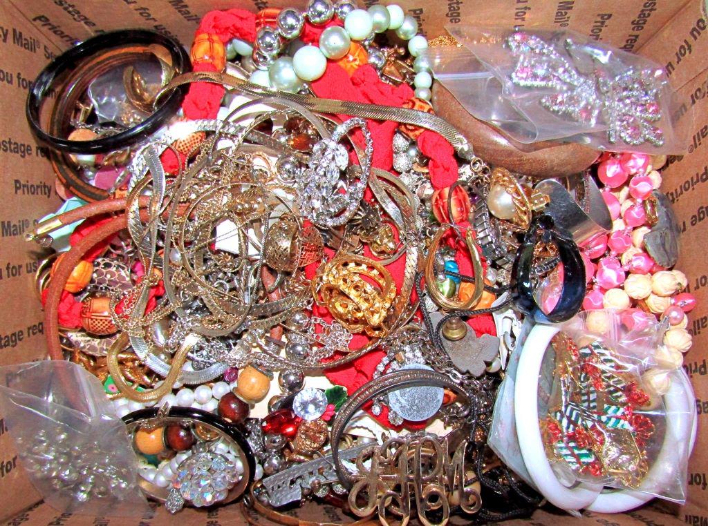 VINTAGE PIECES-SOME NAME BRAND-MEDIUM FLAT RATE BOX FULL OF BAGGED LOTED ITEMS. GREAT FOR RESELL! YOU WON’T BE DISAPPOINTED-THIS WILL BE SHIPPED MED FLATE RATE