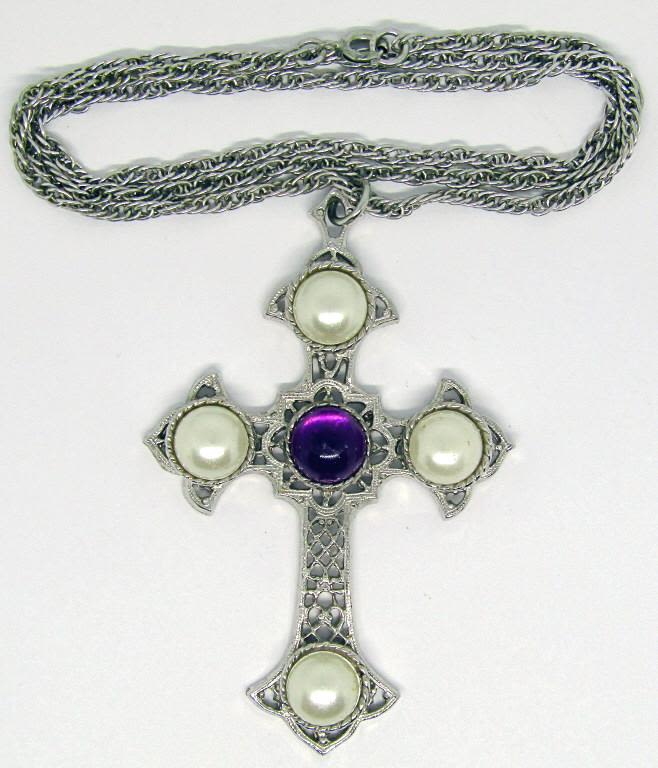 PENDANT WITH VIOLET LUCITE AND FAUX PEARL ACCENTS-COMES WITH CHAIN
