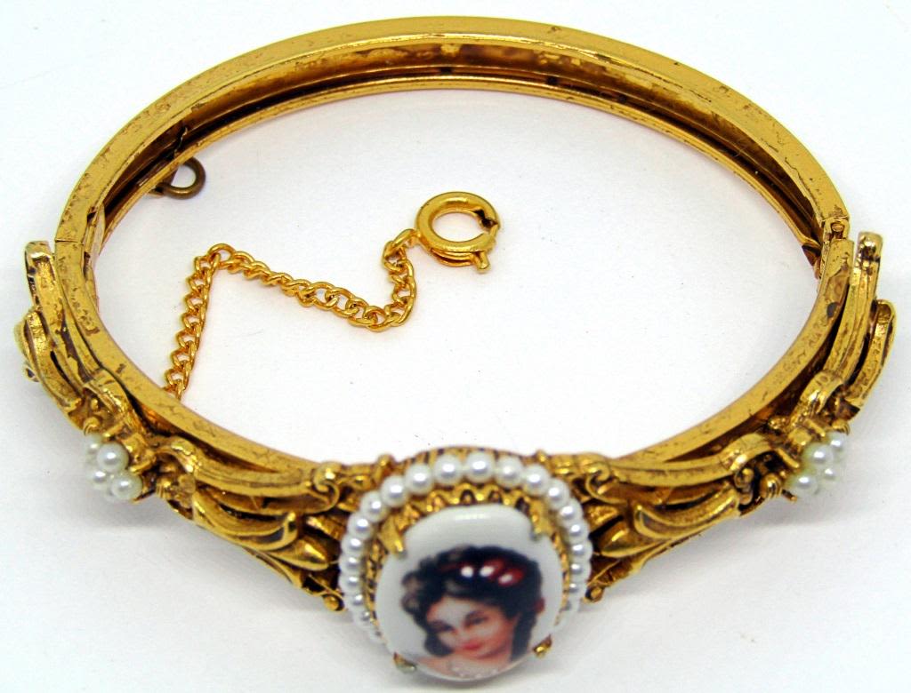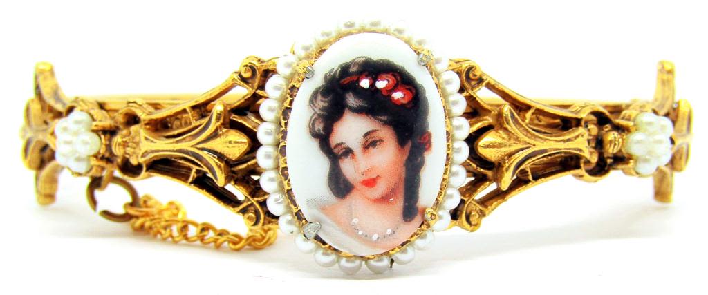 PEARL AND PAINTED EUROPEAN WOMAN PORTRAIT IN CENTER