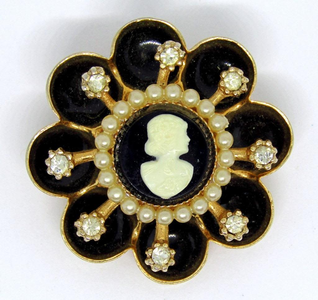 WITH BLACK ENAMEL-RHINESTONES-FAUX PEARLS