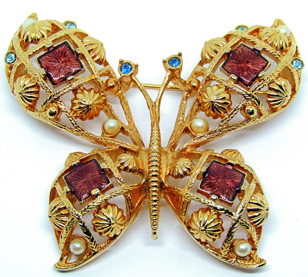 FAUX PEARLS-BROWN ENAMEL-AND RHINESTONES