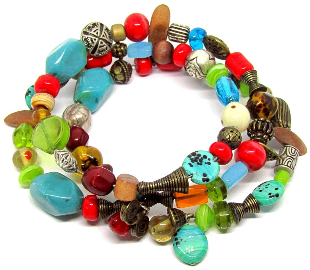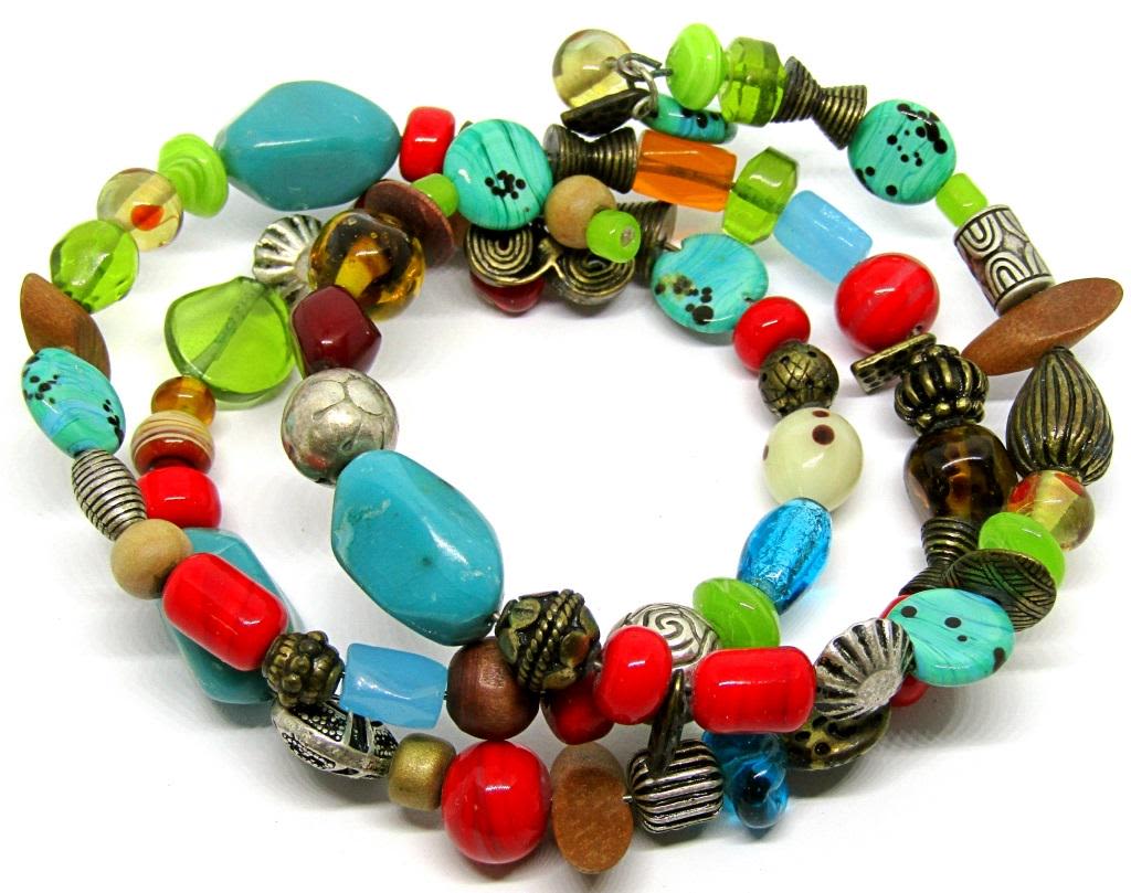 LUCITE-WOODEN BEADS-SILVER TONED BEAD ACCENTS