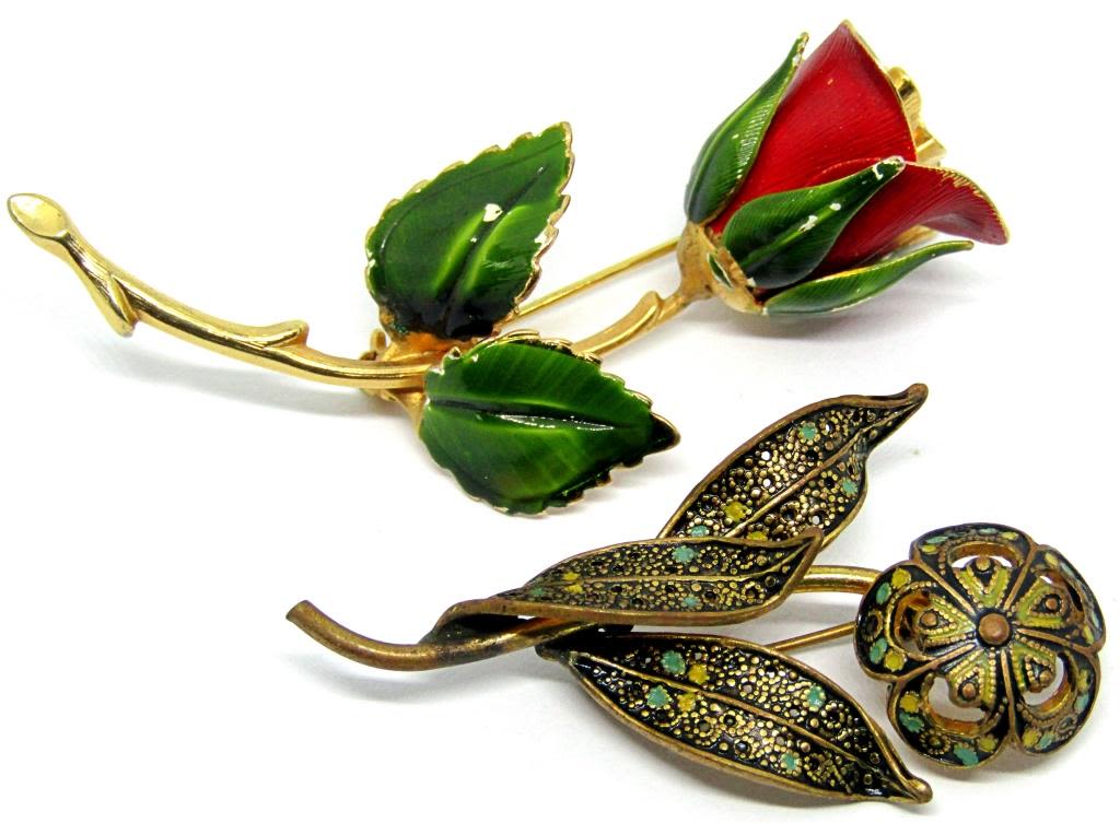 (1)GIOVANNI MEATAL ROSE (1)WITH GREEN BLACK AND YELLOW ENAMEL