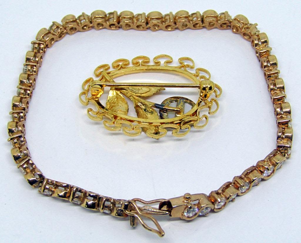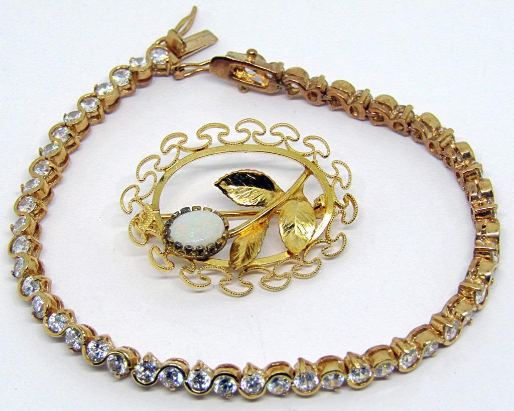 BRACELET PLUS 14K GE FLOWER BROOCH WITH OPAL-LIKE STONE